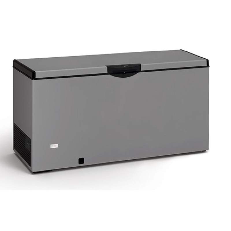 Arcón congelador gris 1,7 mts de 476L de capacidad, aislamiento de 65 mm y gas R600a, ideal para mantener productos congelados en tiendas, restaurantes y supermercados. Con temperatura de trabajo entre -22ºC y -14ºC, consumo energético de 356 kWh/año y control de temperatura mediante termostato analógico. Incluye ruedas para movilidad, descongelación manual y alarma de fallos para un uso fácil y seguro.