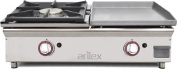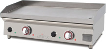 Planchas industriales con superficie de cocción vitrocerámica: En los últimos años están surgiendo las placas de cocción vitrocerámicas. Asociamos las vitrocerámicas a la electricidad, pero también existen las planchas vitrocerámicas de gas. Destacan por su peso ligero, baja porosidad, rápido calentamiento (unos 300º en 2-3 minutos), menor consumo tanto eléctrico como de gas y fácil limpieza (se limpia igual que las vitrocerámicas domésticas). Podemos obtener unos resultados aceptables en nuestros platos, aunque no es el mejor producto si buscamos resultados estéticos.