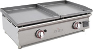 Planchas industriales con superficie de cocción vitrocerámica: En los últimos años están surgiendo las placas de cocción vitrocerámicas. Asociamos las vitrocerámicas a la electricidad, pero también existen las planchas vitrocerámicas de gas. Destacan por su peso ligero, baja porosidad, rápido calentamiento (unos 300º en 2-3 minutos), menor consumo tanto eléctrico como de gas y fácil limpieza (se limpia igual que las vitrocerámicas domésticas). Podemos obtener unos resultados aceptables en nuestros platos, aunque no es el mejor producto si buscamos resultados estéticos.