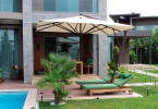 1. Las sombrillas para terrazas de lujo se caracterizan por tener diseños exclusivos que enriquecen la calidad decorativa del lugar, además de proteger del sol. La sombrilla Ibiza con mástil lateral y la sombrilla Barcelona circular están diseñadas y fabricadas a tal propósito. Este tipo de sombrillas se suelen utilizar en piscinas de residencias de lujo y en hoteles.