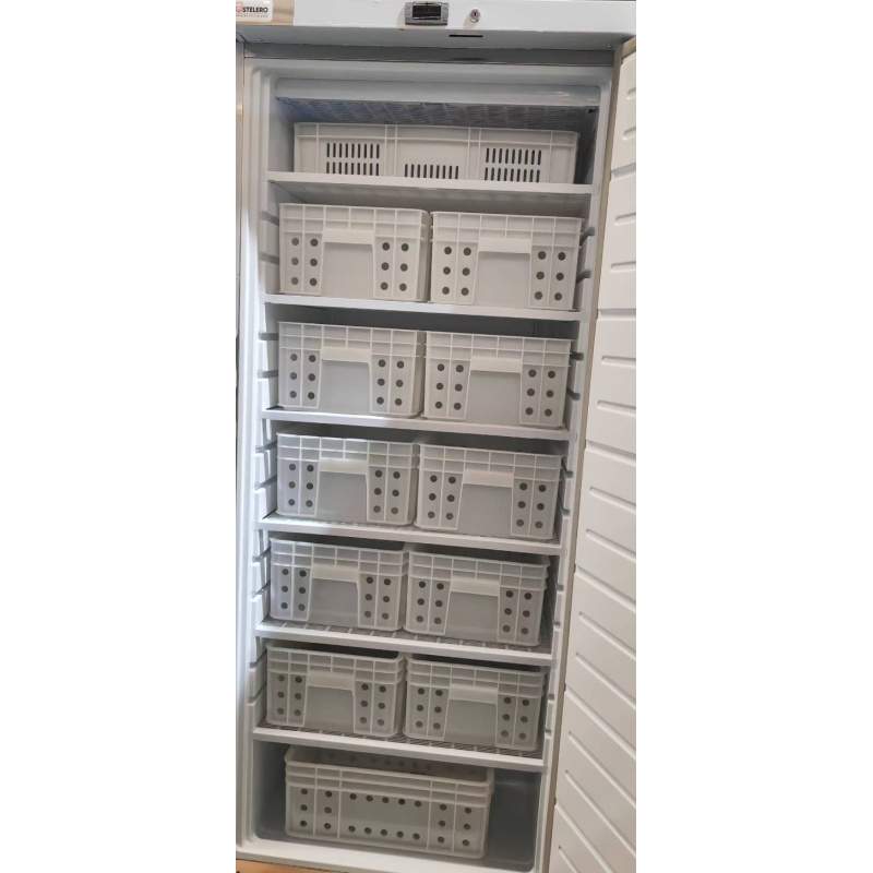 Armario de congelación con 12 cestas. Excelente para organizar alimentos de distinto tipo en sus diferentes cestas. Fabricado exteriormente en acero inoxidable e interior en ABS alimentario. Congelador robusto y profesional con bajo consumo eléctrico etiqueta A.