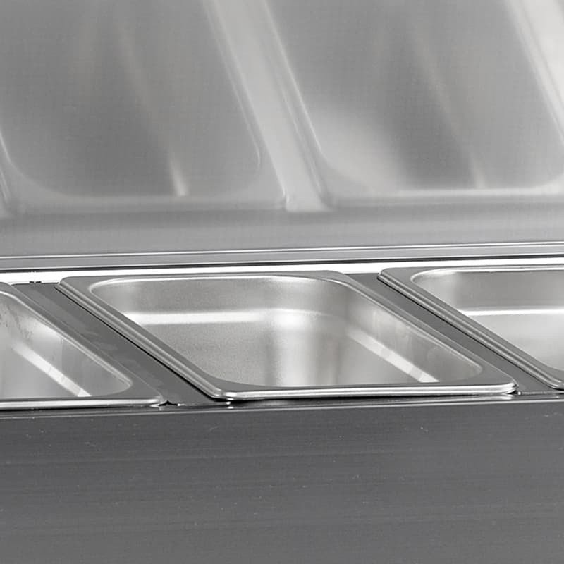 - VITRINA EXPOSITORA REFRIGERADA DE TAPA 1400 MM PARA 6 CUBETAS GN 1/4 GVC33-140 S/S