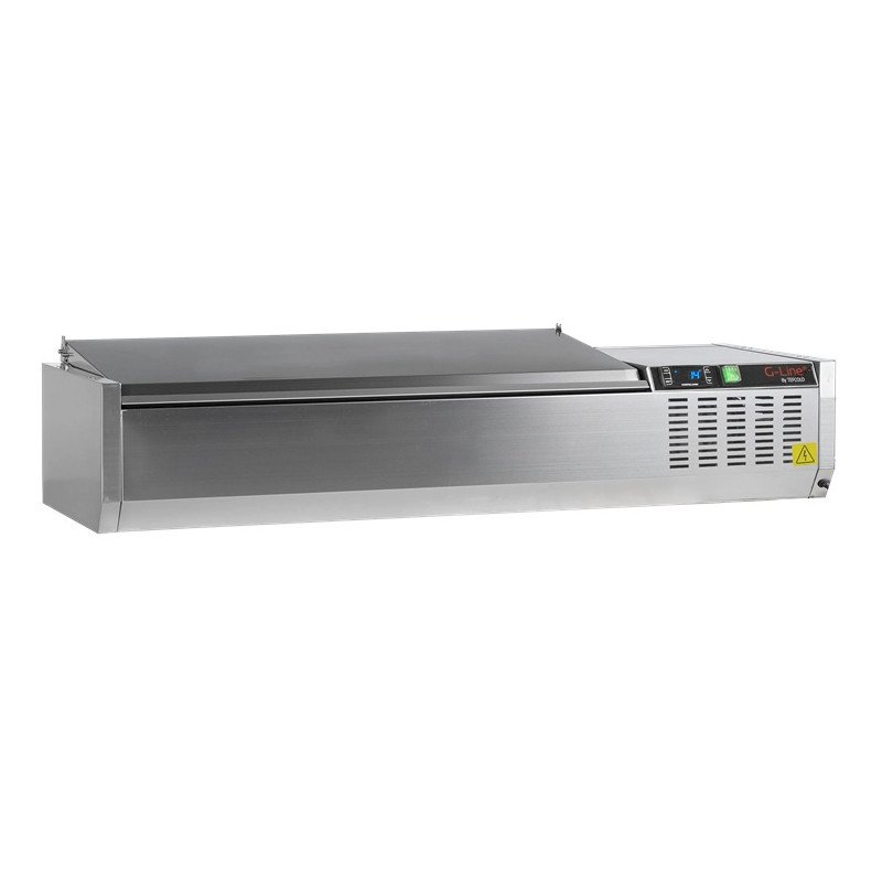 - VITRINA FRÍA DE INGREDIENTES CON TAPA 1200 MM PARA 5 CUBETAS GN 1/4 GVC33-120 S/S