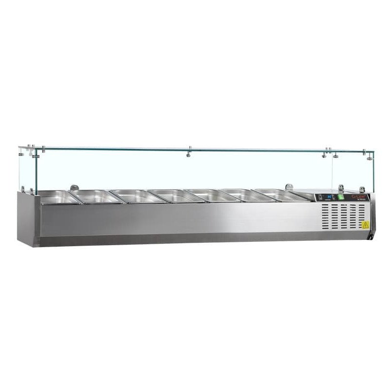 VITRINA FRÍA PROFESIONAL CRISTAL PARA INGREDIENTES 1600 MM PARA 7 CUBETAS GN 1/4 GVC33-160