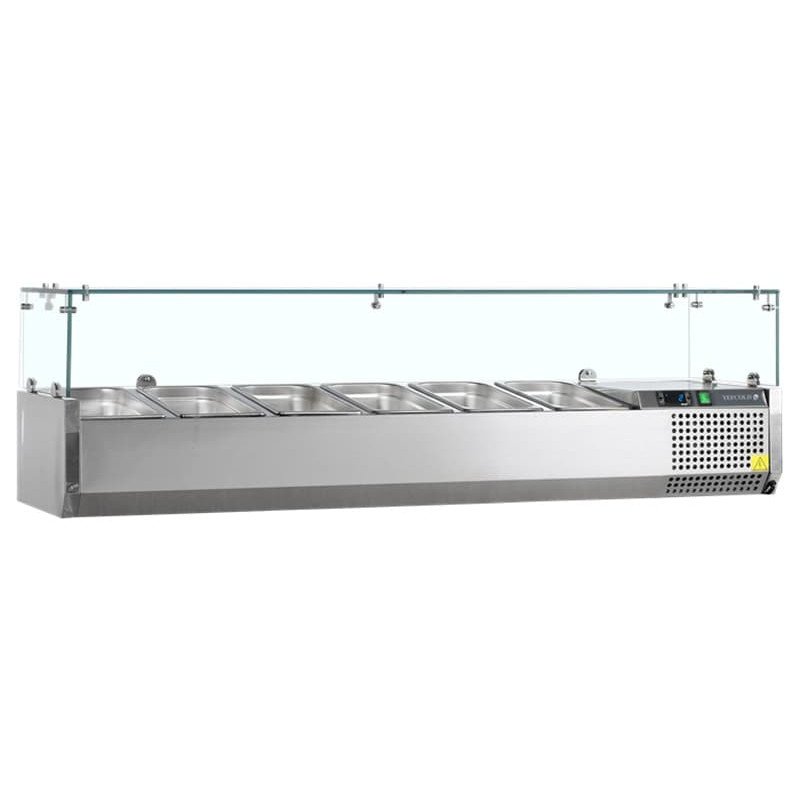 VITRINA REFRIGERADA PROFESIONAL CON CRISTAL 1400 MM PARA 6 CUBETAS GN 1/4 VK33-140
