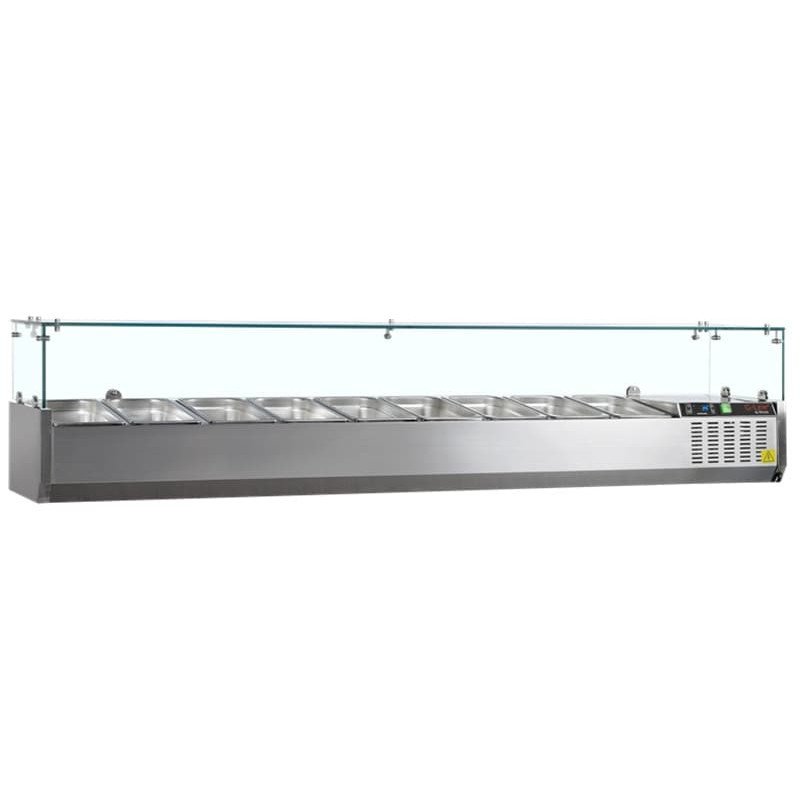 VITRINA SOBRE ENCIMERA CON CÚPULA CRISTAL 2000 MM PARA 10 CUBETAS GN 1/4 GVC33-200