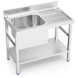 Fregadero industrial fabricado en acero inoxidable de alta calidad. Cuenta con 1 seno a la izquierda de 500x400x250 mm, 1 estante bajo el seno y escurridor a la derecha.