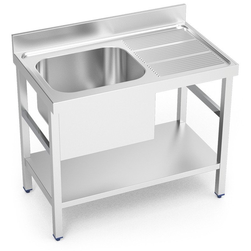 Fregadero industrial con 1 estante, fabricado en acero inoxidable AISI 304.