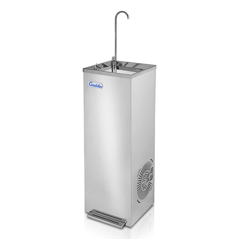 Requiere de entrada de agua, desagüe y enchufe. Ideal para escuelas, industrias, universidades, colectividades, restaurantes, talleres, aeropuertos, centros comerciales y para todos los lugares donde se necesite una gran cantidad de agua fría potable, o abastecer hasta a 50 personas de forma simultanea.