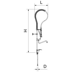 El Grifo Profesional de Ducha de 2 Aguas con Caño Serie MNE está diseñado para cocinas industriales y entornos de trabajo donde se exige una grifería robusta, duradera y de alto rendimiento. Con unas dimensiones de 450 × 1300 mm, ofrece una altura y alcance óptimos para realizar tareas de lavado y aclarado de utensilios, ollas, bandejas y recipientes de gran tamaño.