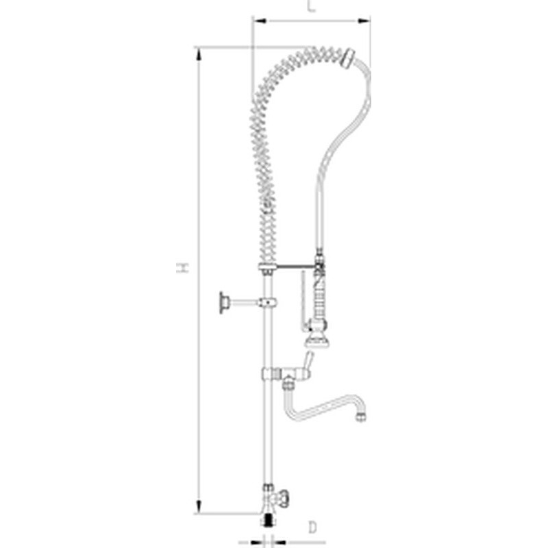 - GRIFO PARA COCINA INDUSTRIAL DUCHA + CAÑO 1 AGUA SERIE RD 450X1300 MM