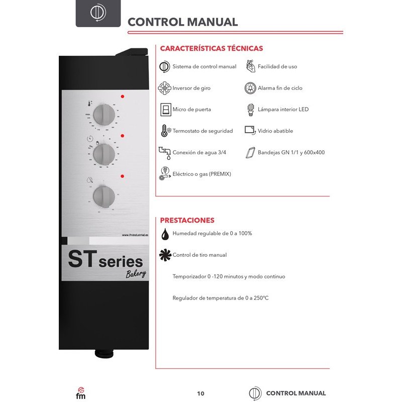 - HORNO PROFESIONAL PARA PANADERÍA 10 BANDEJAS 600X400 - GN1/1 400V FM STB 610 M