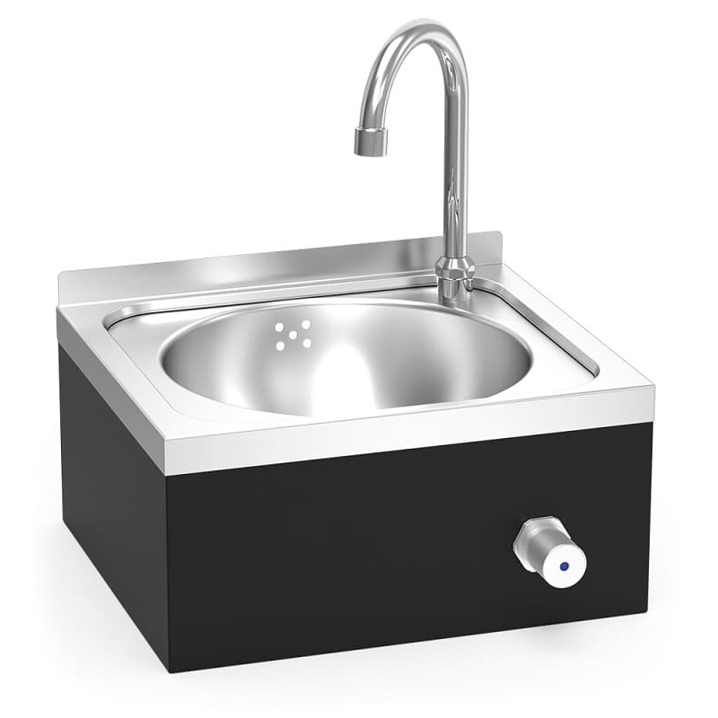 Lavamanos registrable de la Serie Black con pulsador de rodilla, ideal para entornos profesionales. Fabricado en acero inoxidable pintado en negro mate, ofrece diseño sofisticado y funcionalidad. Perfecto para cocinas de diseño, spas y estudios de estética, asegurando higiene y seguridad.