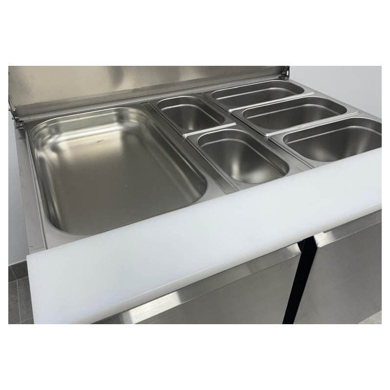 MESA DE PREPARACION DE ENSALADAS 2 PUERTAS 230L CON TABLA DE CORTE Y TAPA EHSA90GK