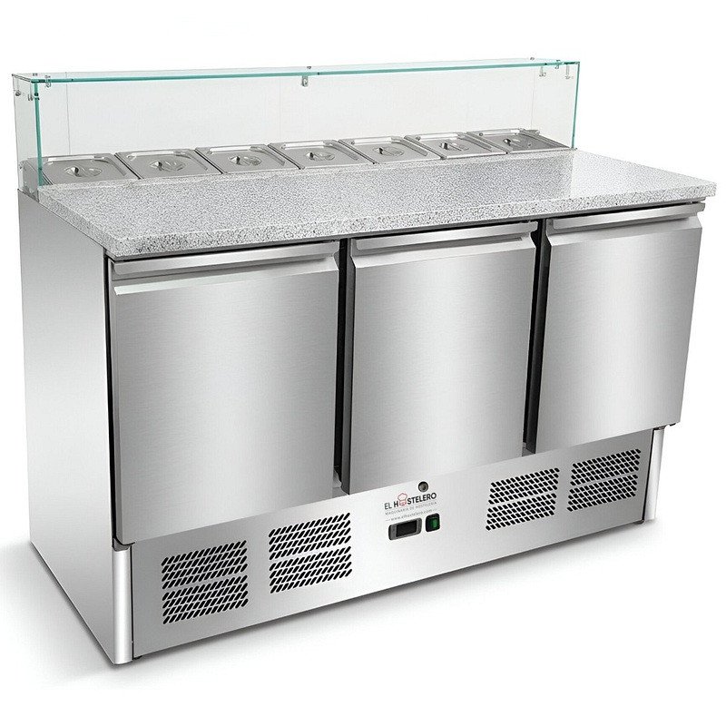 - MESA ENSALADERA REFRIGERADA 3 PUERTAS ENCIMERA GRANITO + VITRINA DE INGREDIENTES EHPS903GT