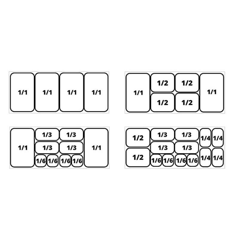 Configuración de cubetas recomendada: 2x GN1/1 + 6x GN1/3 (No incluidas).