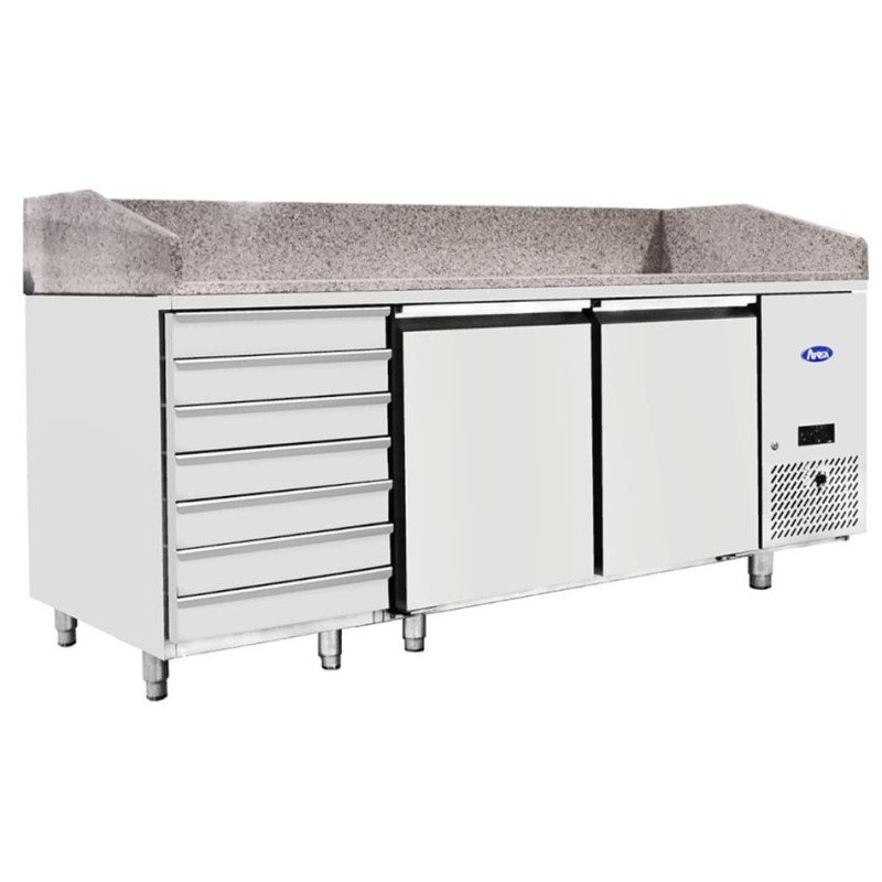 - MESA FRÍA 2 PUERTAS Y 7 CAJONERAS CON ENCIMERA DE GRANITO EHEPF3480-GR