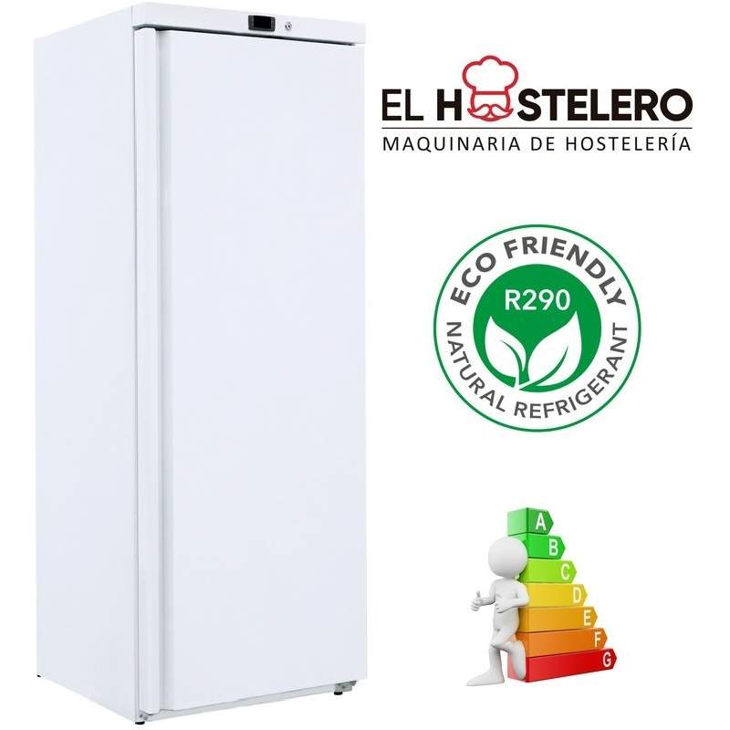 Frigorífico industrial de 600 litros DR600. Refrigerador robusto y profesional con bajo consumo eléctrico gracias al uso de gas refrigerante ecológico R290 que aumenta el rendimiento frigorífico disminuyendo el consumo. Acabado en acero blanco que proyecta la imagen de limpieza tan importante en zonas de almacenamiento alimentario.