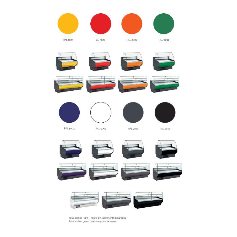 Una vitrina expositora fiable, eficiente y con diseño profesional, pensada para destacar tus productos y optimizar el espacio de trabajo. Disponible en 8 colores distintos al mismo precio. Disponible en varias medidas de largo para adaptarse mejor a las necesidades de la tienda de alimentación en la que se va a ubicar.