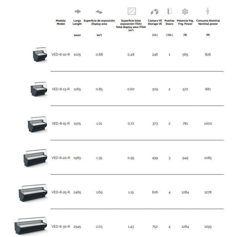La vitrina refrigerada Docriluc VED-8-C es una vitrina profesional de alto rendimiento, diseñada para realzar la presentación de productos frescos y garantizar su perfecta conservación. Con un elegante frontal curvo en cristal securizado, esta vitrina es ideal para carnicerías, charcuterías, pastelerías y comercios de alimentación que buscan una solución profesional, eficiente y visualmente atractiva.