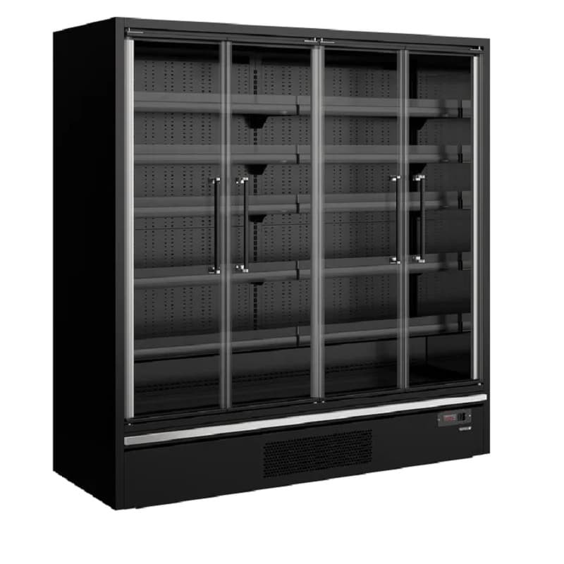 - MURAL REFRIGERADO SUPERMERCADO 4 PUERTAS CRISTAL PANORAMICAS E INTERIOR ESPEJO 2M GALAXY+ GP14FGD BLACK